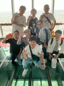 350mの上空から見渡す景色は非日常そのもので、人類の技術に感嘆を隠せませんでした。ふと感じたことなんですが、単独行動がほとんど見られず、うちのクラブはホント仲がいいですね~。終始、笑顔と疲労感(みんな仕事に区切りをつけて参加しているので疲れているんですねぇ)がありましたね。