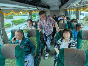 昭島駅からバスに乗り、各々好きな席に座り、仲間達と懇親を深めながら一路浅草へと向かいました。